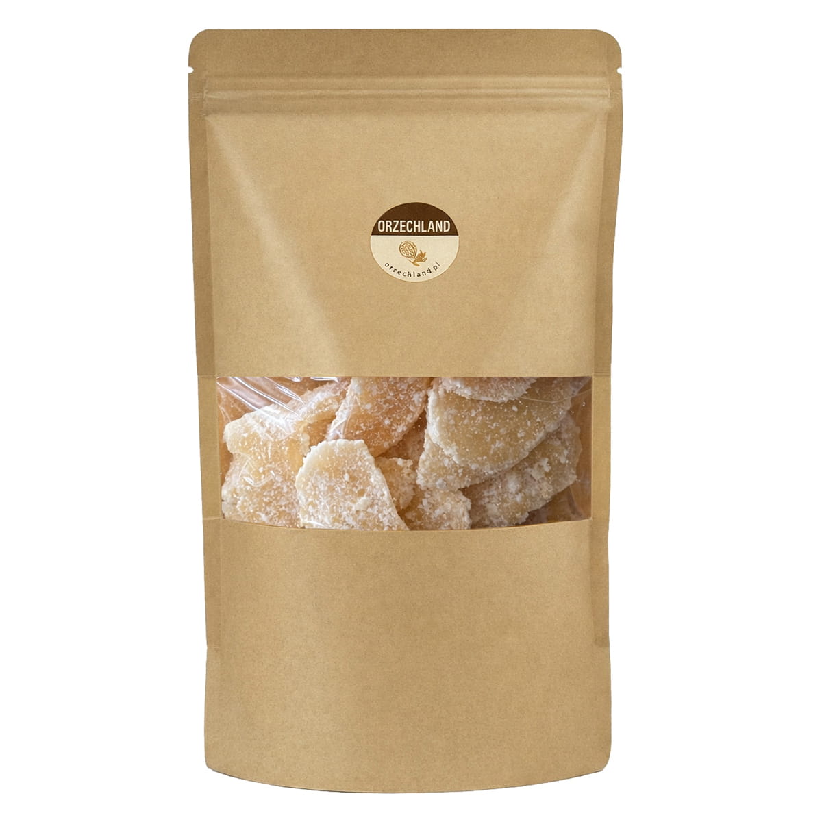 Imbir kandyzowany o intensywnym, lekko pikantnym smaku i chrupiącej konsystencji. Idealny jako przekąska, dodatek do herbaty, wypieków i deserów. Kup online w Orzechland z dostawą.