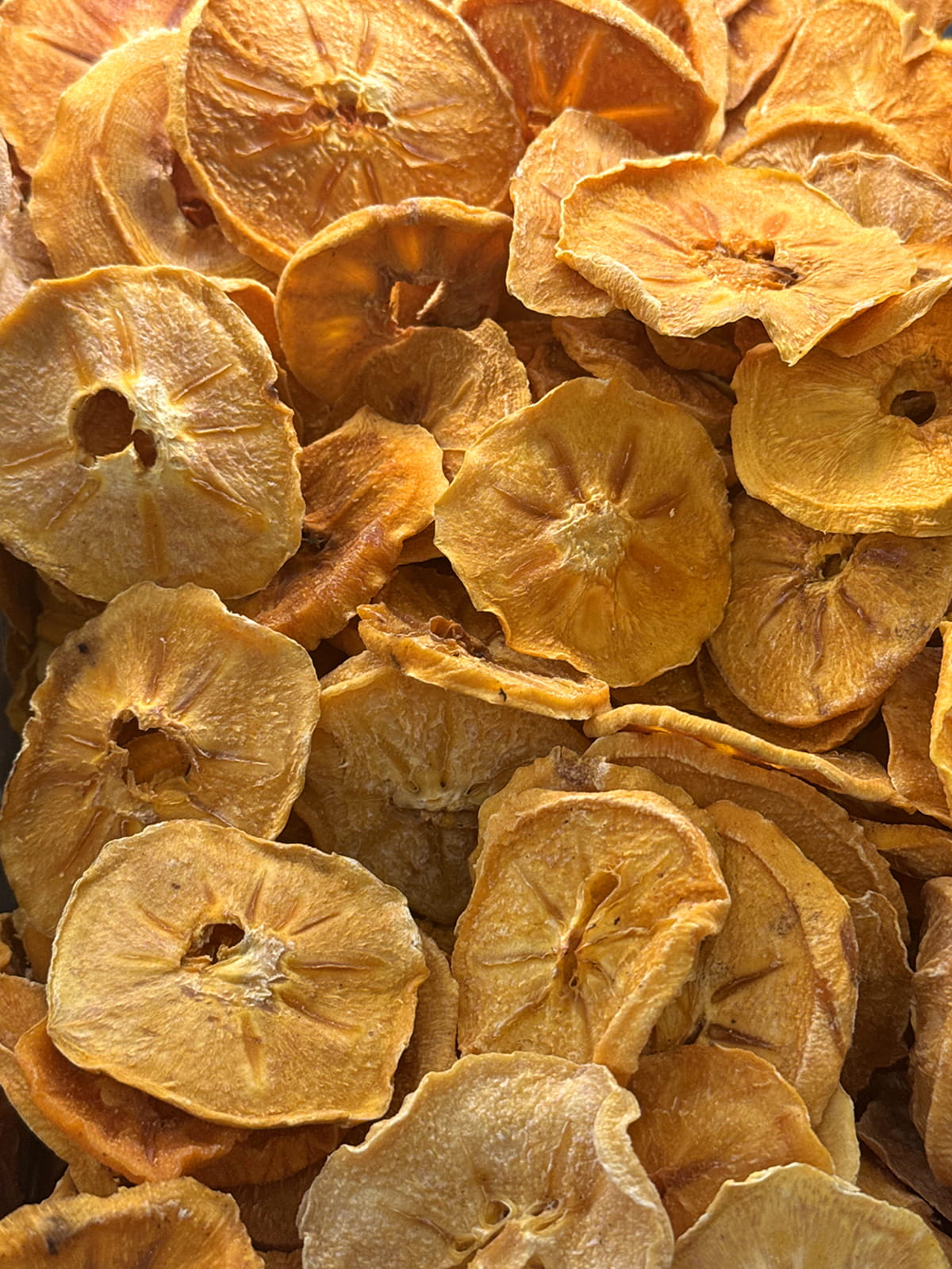 Skąd bierze się tak intensywna słodycz plastrów? Słodycz wynika z naturalnej koncentracji cukrów owocowych. Podczas suszenia woda znika, a smak owocu staje się głębszy i bardziej miodowy. Do naszego kaki nie dodano ani grama cukru.