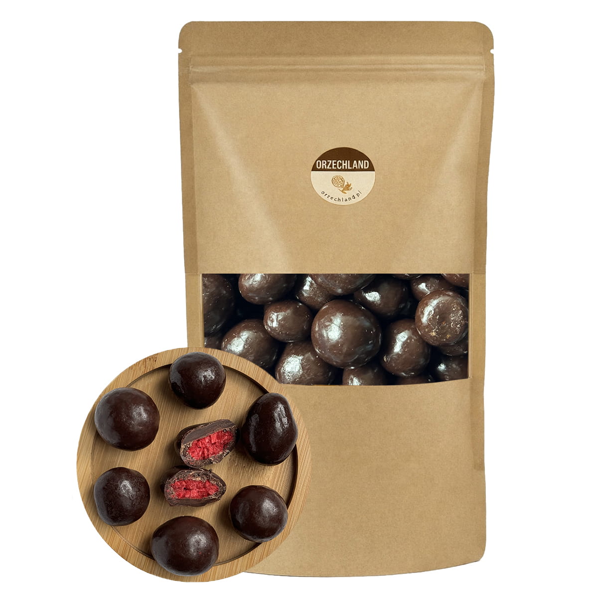Malina w gorzkiej czekoladzie 250g – idealny balans między owocową kwasowością a wytrawnym smakiem