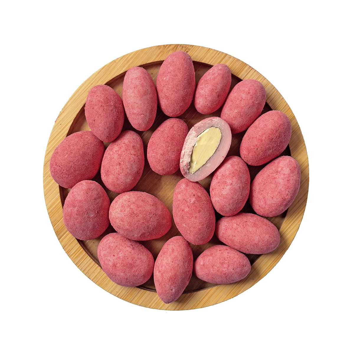 Migdały w białej czekoladzie z liofilizowanymi malinami 1kg