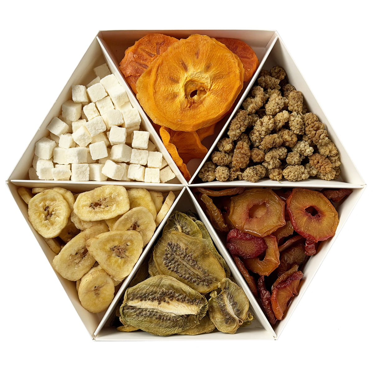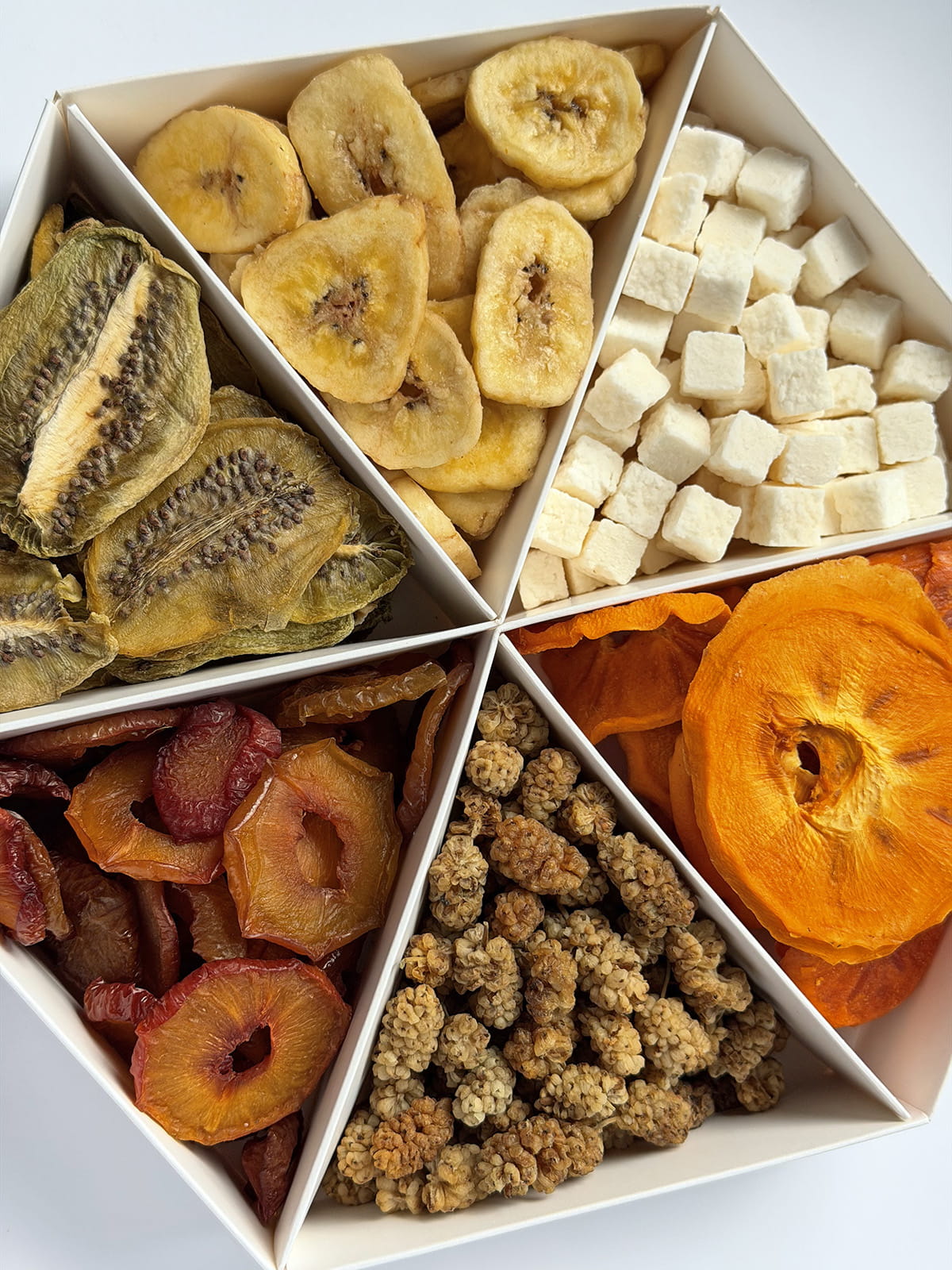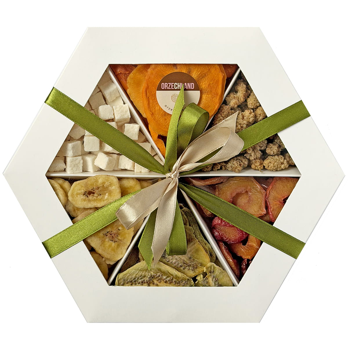 Szukasz zdrowego i efektownego prezentu? Zestaw Prezentowy Wakacyjny OrzechBox to wyjątkowe połączenie 6 egzotycznych owoców suszonych, które zachwycają naturalną słodyczą. W eleganckim pudełku znajdziesz m.in. kaki, kiwi oraz morwę BIO, tworzące idealną kompozycję smaków. To gotowy, stylowy upominek i pełna witamin przekąska, która świetnie sprawdzi się w podróży, w pracy lub jako zdrowa alternatywa dla słodyczy.